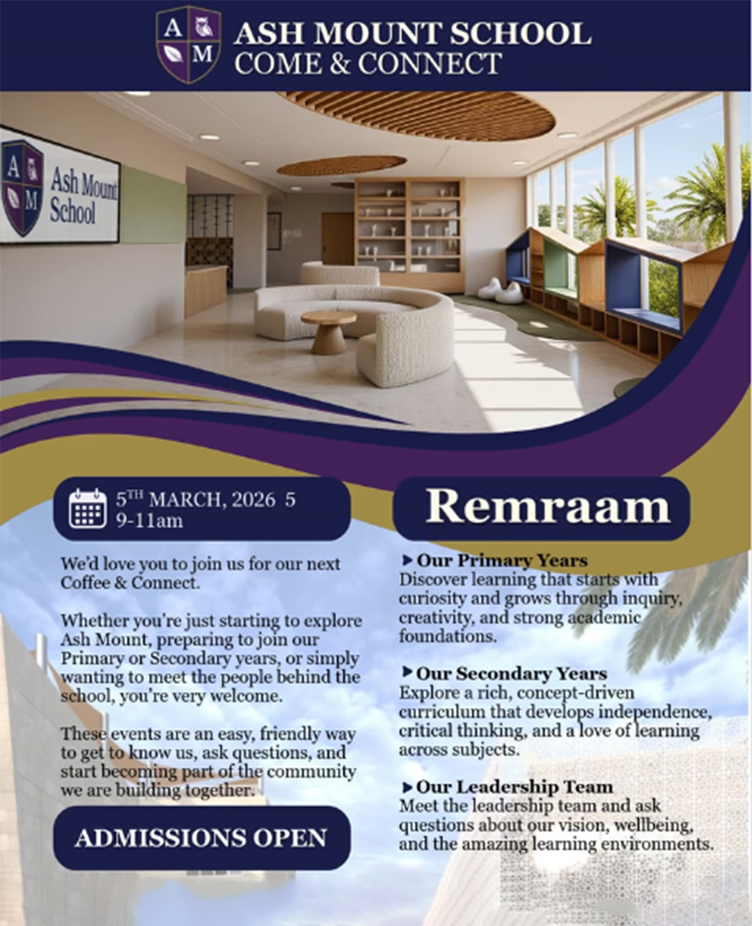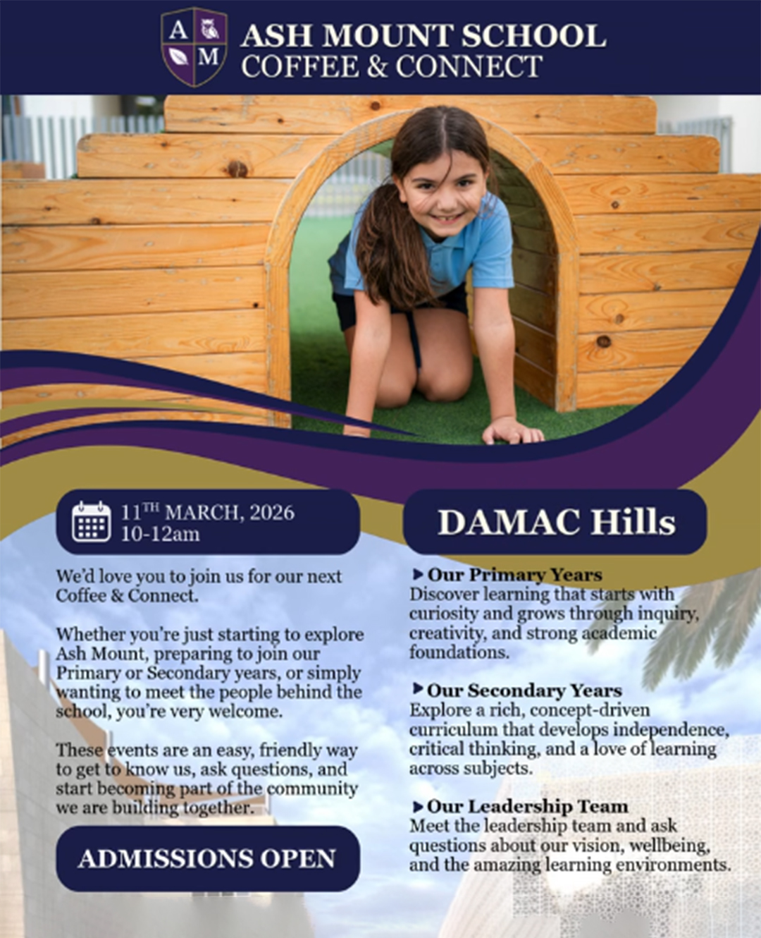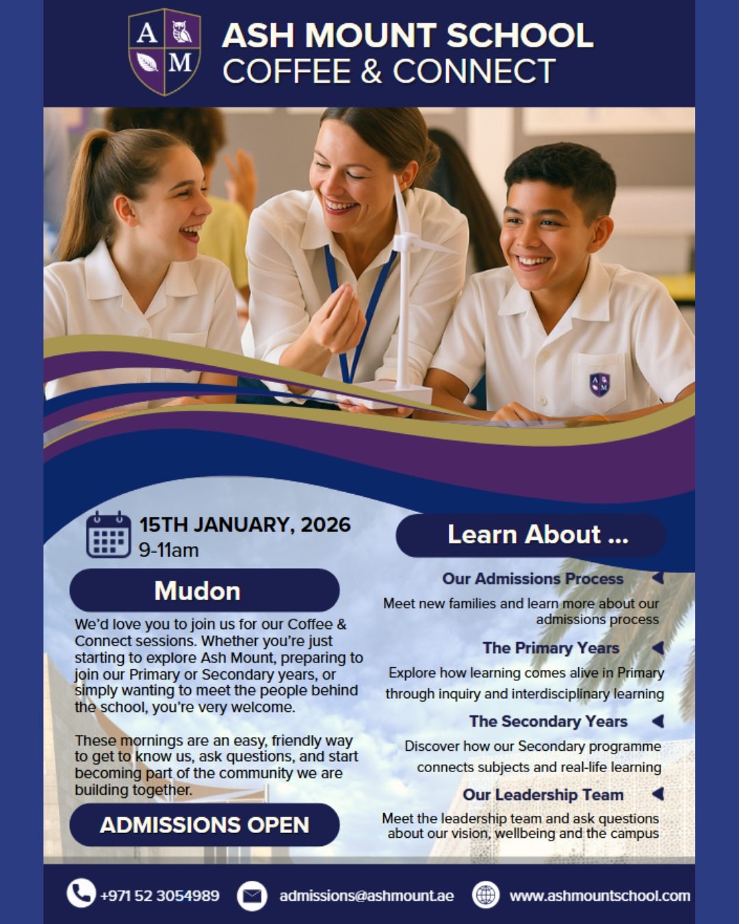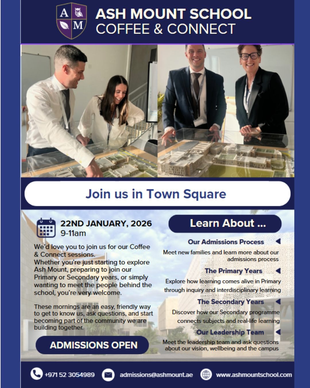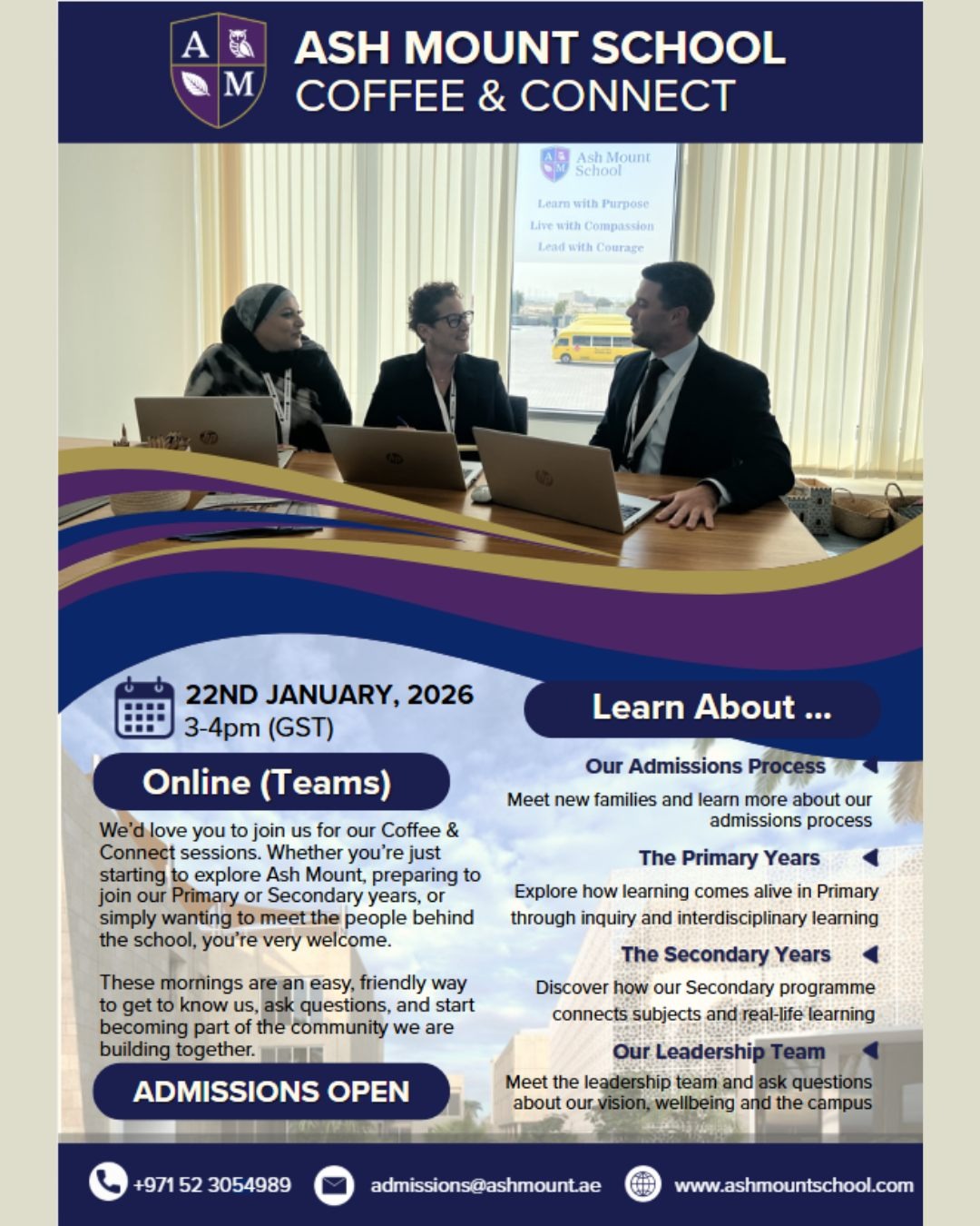 At Ash Mount, we deliver a curriculum grounded in an international framework, enriched by the local and global context of the UAE, and aligned with national priorities, including UAE Vision 2071. This education balances rigour with joy, inquiry with structure, and academic success with wellbeing and student voice. Every child will be challenged, supported, and celebrated, developing as inquirers, leaders, and change-makers. I have had the privilege of opening and leading schools both across the region and internationally. Each of those experiences has deepened my belief in the power of partnership: between students, staff, families, and the wider community. At Ash Mount, we are creating a culture where people are valued, voices are heard, and ideas flourish. Our open-door philosophy reflects our commitment to being a school where relationships come first.